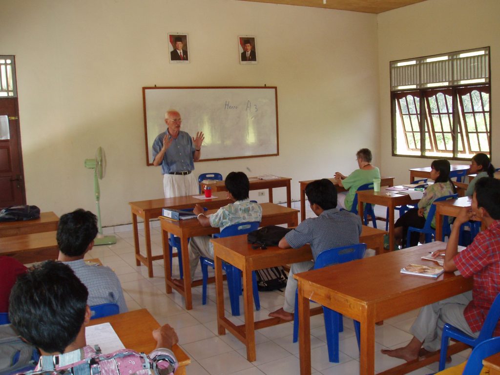 Ondanks die beperking van een dag per week zag ik toch kans om contacten op te bouwen met de studenten, het meest met Agus, de pienterste student uit de klas. Die de stukken uit de vertaling van mijn dissertatie controleerde op taalfouten. Want dat was de collegestof voor de andere dag. Het verplichte onderwerp voor het eerst jaar was de kerkgeschiedenis van de eigen regio. Dat was voorgeschreven door de Protestantse Afdeling van het Ministerie voor Onderwijs.